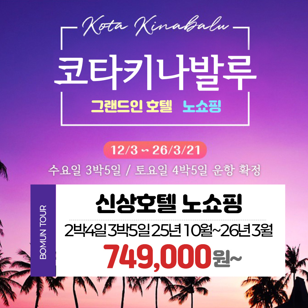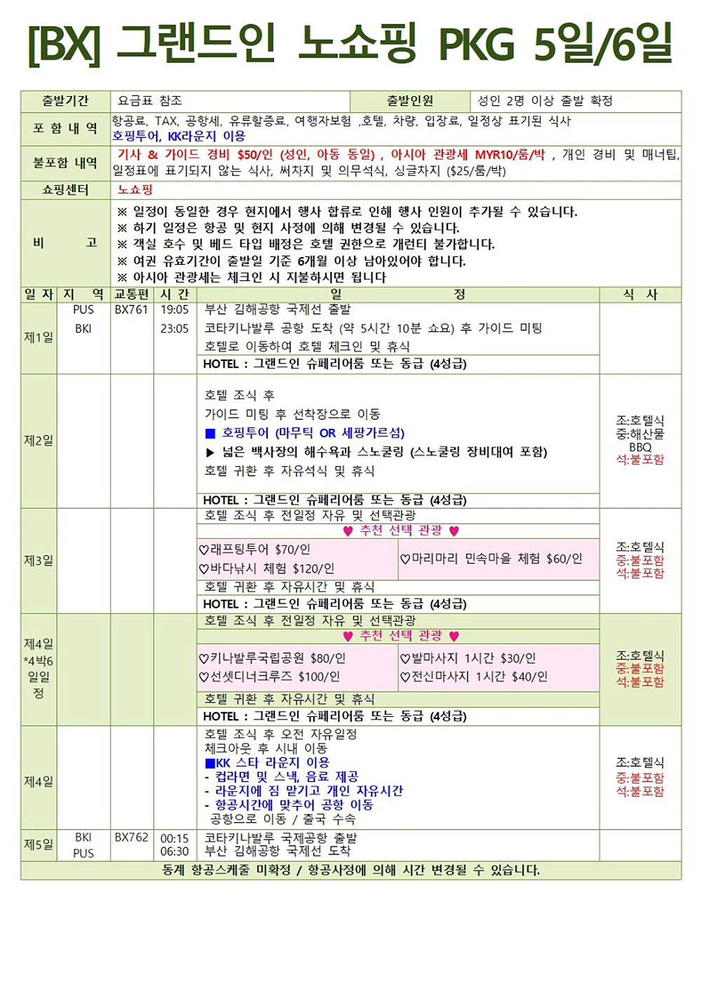 BX 코타키나발루 그랜드인 NO쇼핑 호캉스 5일/6일 PKG
