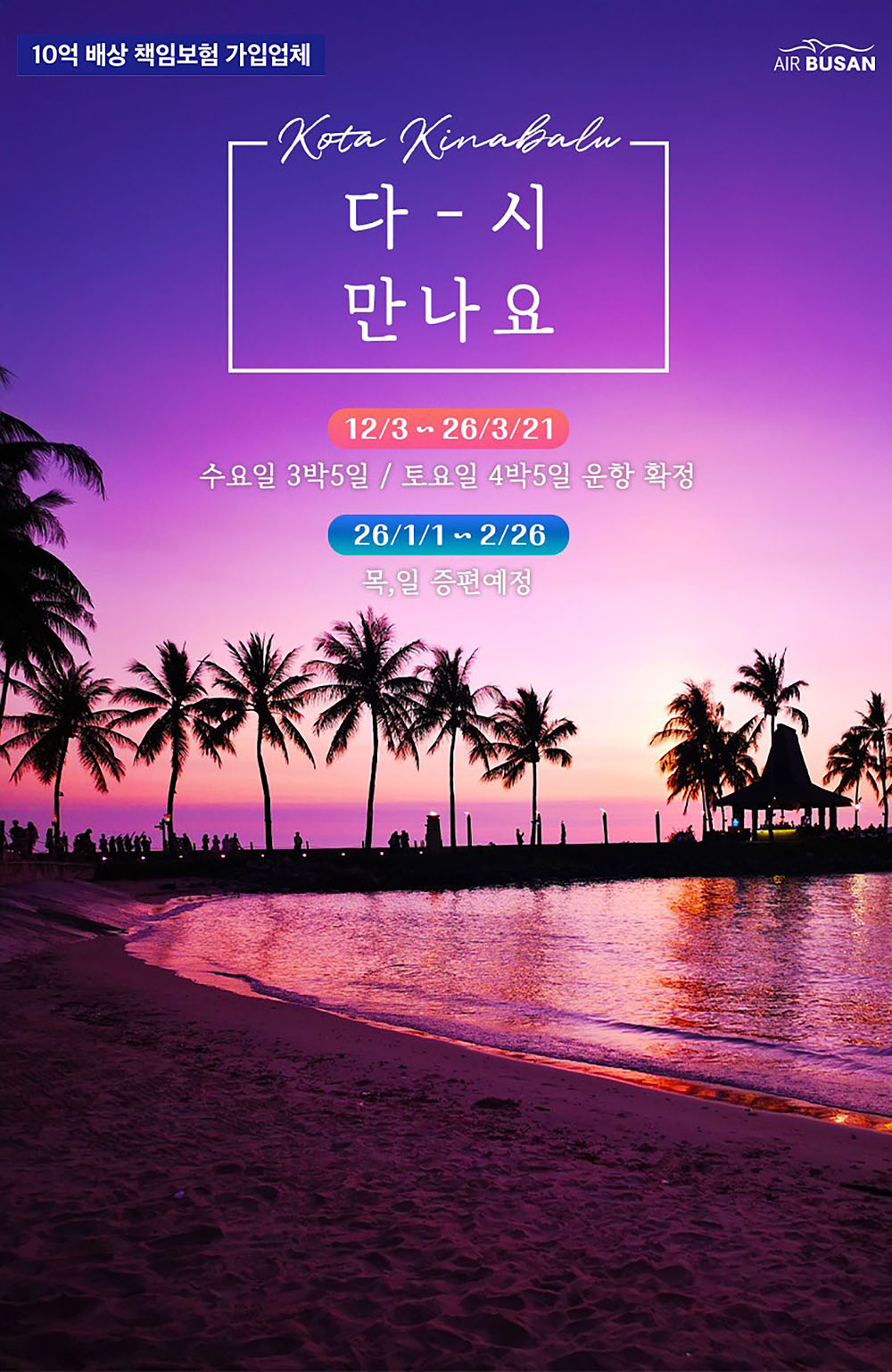 🛫 부산 - 코타키나발루 BX761 19:05-23:05