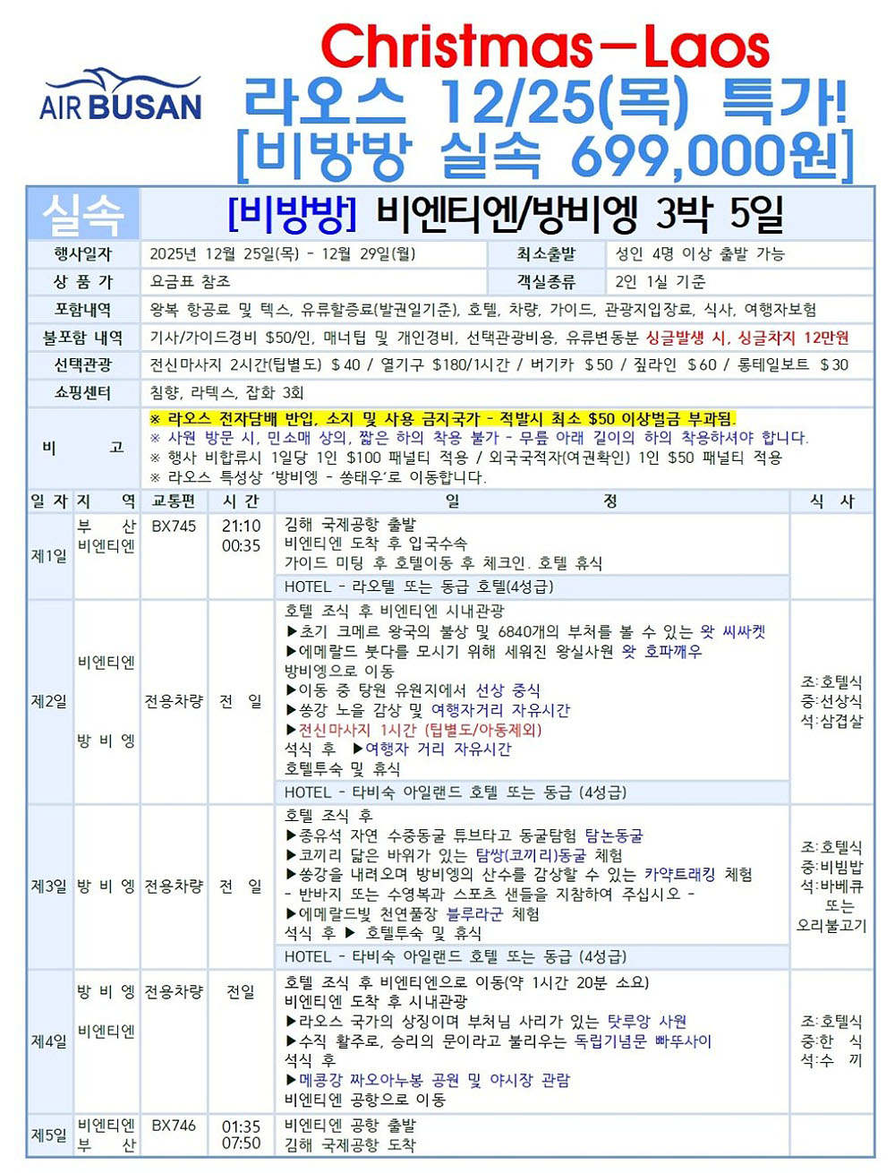 💙12/25 라오스 [비방방 실속 699,000원]💙