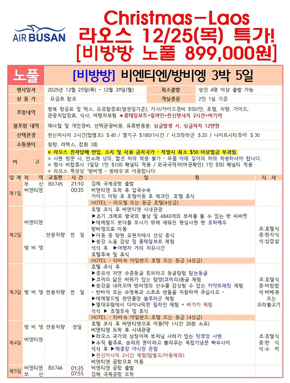 💙12/25 라오스 [비방방 노풀 899,000원]💙