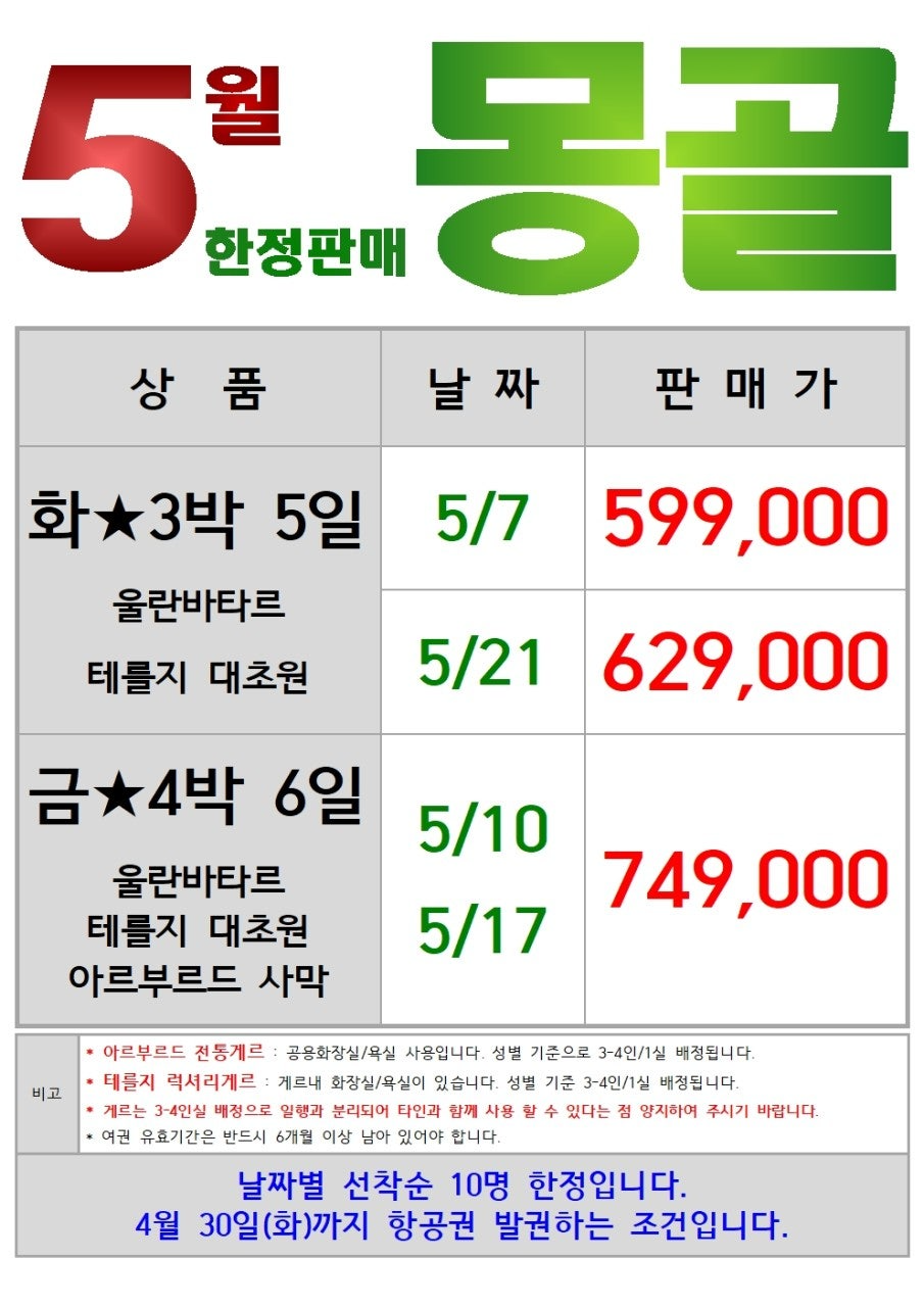본격적인 몽골 시즌과 가정의 달을 앞두고