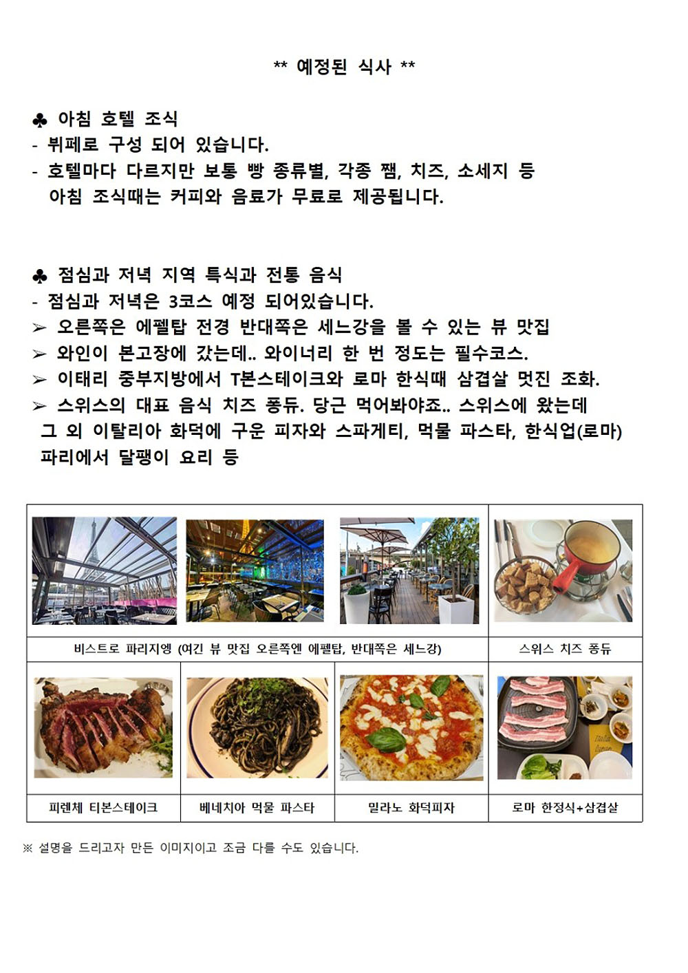 🔴 특별한 식사 - 파리 : 비스트로 파리지엥 3코스, 스위스 : 전통식 치즈퐁듀