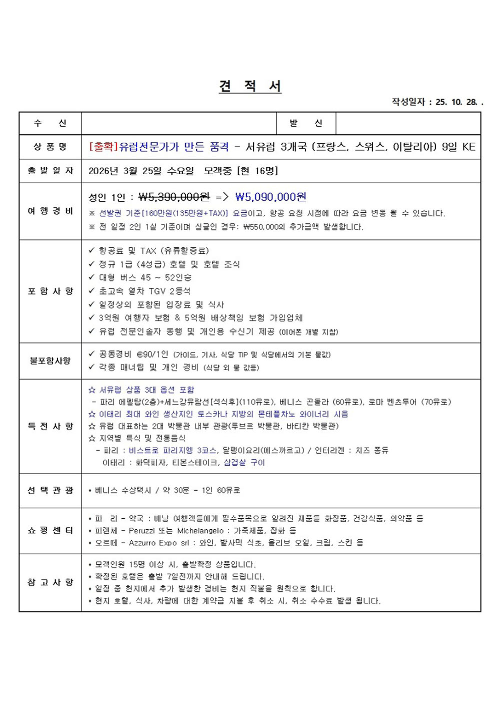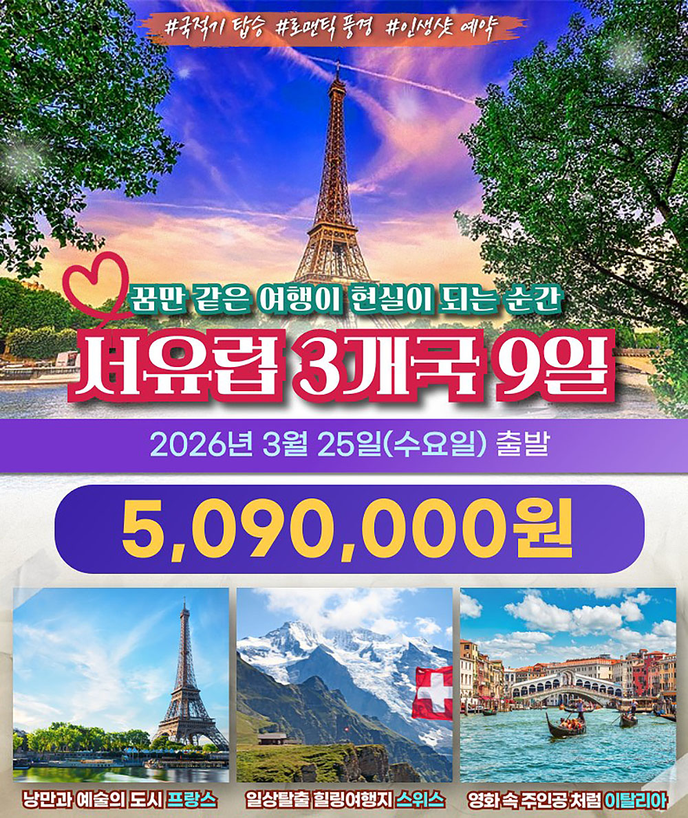📅 출 발 : 26년 3월 25일(수) / 성인 1인 : 509만원