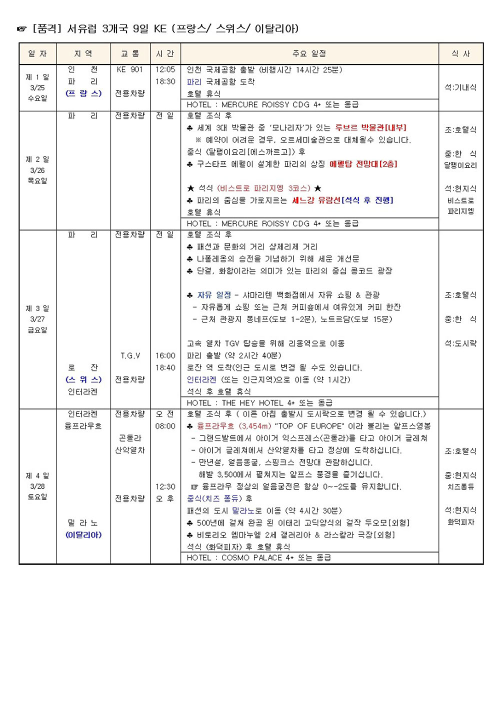서유럽 3국 9일 (프랑스 스위스 이탈리아)